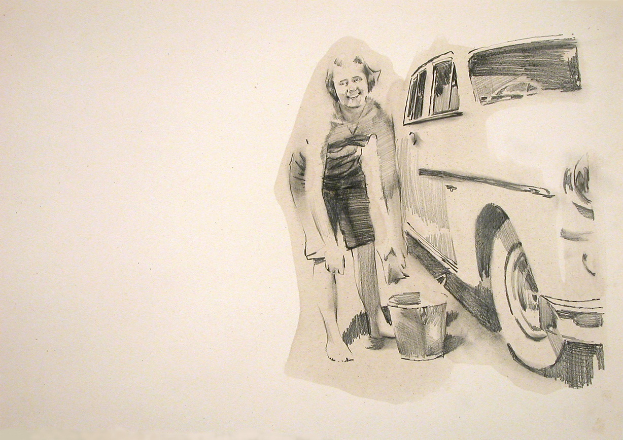In these drawings we see the gutsy, courageous results of the artist’s process of wrestling with his past, his memories, his myths. He is uncomfortable presenting this work as it begins to unravel the true reality of his world. Living, fully engaged, each day leaves him with a multitude of unresolved questions. Why should a drawing that is derived from this uncertain activity not reflect the experience? Time slips back and forth through a recent past cinema, newspaper advertisement and television soap opera to the frustrated daily routine of the moment – the comforting American Dream interrupted by the violent thunder of everyday life.